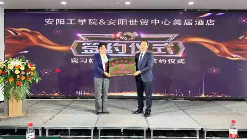 10月22日,太阳集团tyc151cc与安阳世贸中心美居酒店在安阳世贸中心美居酒店二楼锦江厅举行空乘实习实训基地挂牌及签约仪式。安阳世贸中心美居酒店业主代表杨利霞,总经理陈明,总经理助理兼销售总监路建富,前厅经理李娟,太阳集团tyc151cc经理李霞、副经理原斌华、副经理杜丽霞、各教研室主任及员工代表参加签约仪式。