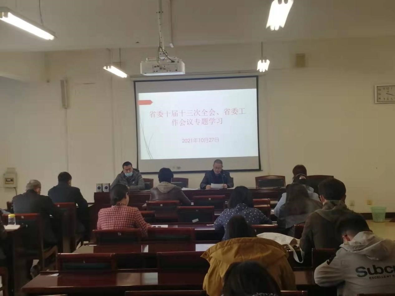 会上,太阳集团tyc151cc党总支书记郭强同志带领大家集中学习习近平总书记《在纪念辛亥革命110周年大会上的讲话》、《中华人民共和国恢复联合国合法席位50周年纪念会议上的重要讲话》。同时,由党总支书记郭强同志传达省委十届十三次会议、省委工作会议精神,并组织大家学习。