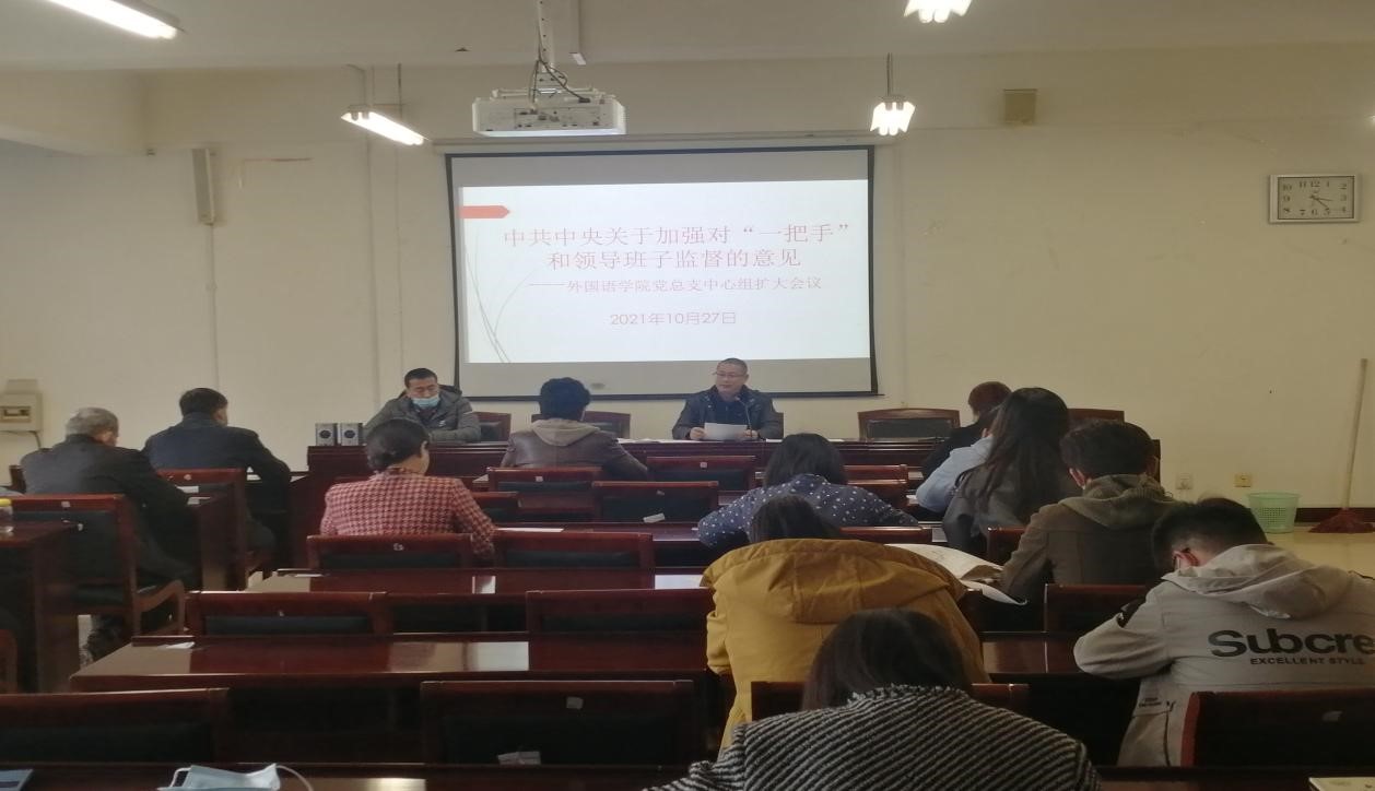 10月27日下午,太阳集团tyc151cc党总支召开理论学习中心组扩大会议,集中学习《中共中央关于加强对“一把手”和领导班子监督的意见》,中心组全体成员以及全体党员教师参加学习。