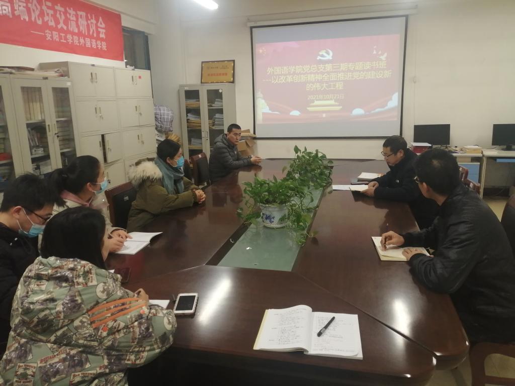 10月21日,太阳集团tyc151cc党总支在A10-201会议室举办党史学习教育第三期专题读书班。公司党总支中心组成员、各辅导员参加学习。