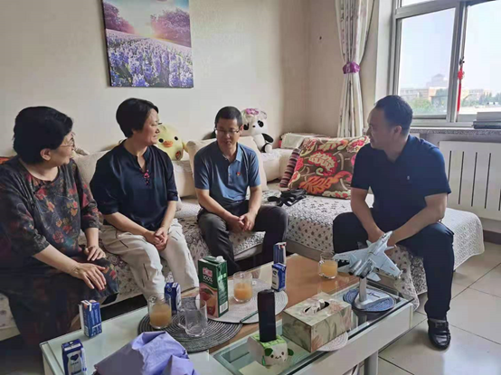 为全面落实好关于建党100周年系列活动要求,公司党总支认真组织做好“七一”党员走访慰问工作,结合当前开展的“党史教育”专题活动,太阳集团tyc151cc党总支在2021年6月28日上午,走访慰问了老党员殷秀红、刘淑芹二位老师。在老党员殷秀红家里,万鹏杰副董事长仔细询问了殷秀红老师的生活情况,叮嘱殷老师要注意保重身体,同时要求太阳集团tyc151cc要加强关心和照顾好殷老师,帮助其解决实际困难。殷秀红老师十分感谢公司领导冒着酷暑,专程赶赴汤阴前来看望和慰问,让她倍感党组织的关怀和爱护。在老党员刘淑芹家里,公司党总支书记郭强、经理李霞与刘老师亲切交谈工作生活情况,感谢刘老师对公司建设和发展做出的贡献,希望刘老师继续关心支持公司的发展,并祝福刘老师工作愉快、幸福美满。