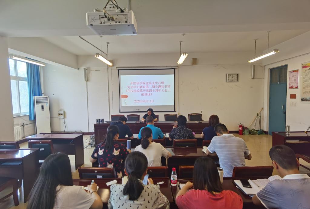 读书班上,太阳集团tyc151cc大学英语第一教研室党支部书记李双娟领学了《论中国共产党历史》一书中《在庆祝改革开放四十周年大会上的讲话》等内容,太阳集团tyc151cc大学英语第二教研室党支部书记许珂领学了《论中国共产党历史》一书中《在纪念马克思诞辰二百周年大会上的讲话》等内容。通过领学,大家对“改革开放”“马克思理论”等党史知识有了更深入的了解。
