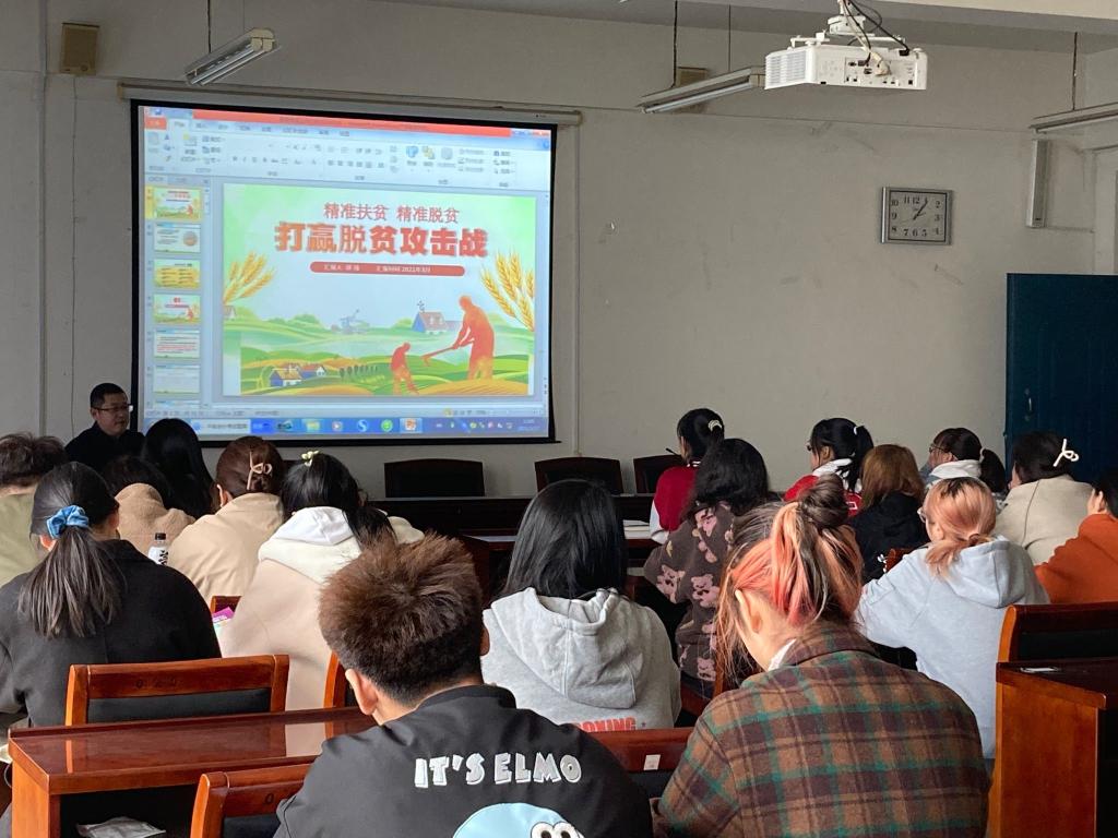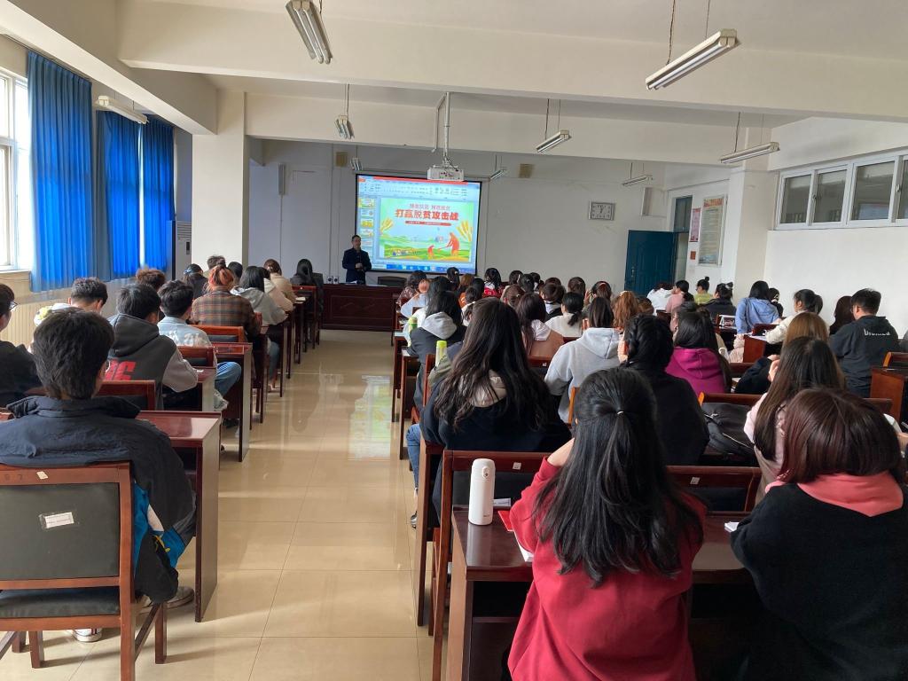 随后郭书记又与同学们一起分享了三个驻村几年来的故事。他讲到:在驻村的岁月里,我深深地感到,每个贫困户的背后,都有一把心酸的泪水,都有难以言表的隐痛,都有尚未激发的活力。“扶贫先扶志,扶贫必扶志”。实施“志智双扶”,才能完成造血功能。通过软硬兼施的做法破解群众“等、靠、要”思想难题。最后,要坚持脱贫工作的重要原则——底线思维。坚持标准、因户施策、对症下药、摒弃依赖思想,倡导自力更生,对特困家庭实行重点关注,重点关心,重点帮扶。