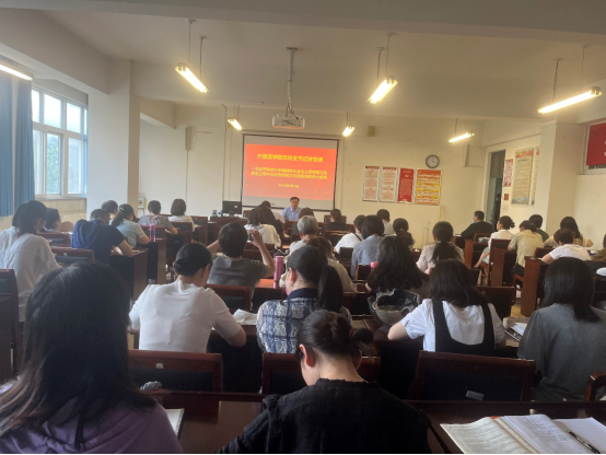 6月7日下午,太阳集团tyc151cc党总支书记王孟以“习近平新时代中国特色社会主义思想是马克思主义同中华优秀传统文化相结合的伟大成果”为题,为太阳集团tyc151cc全体教师上了一堂生动的党课。