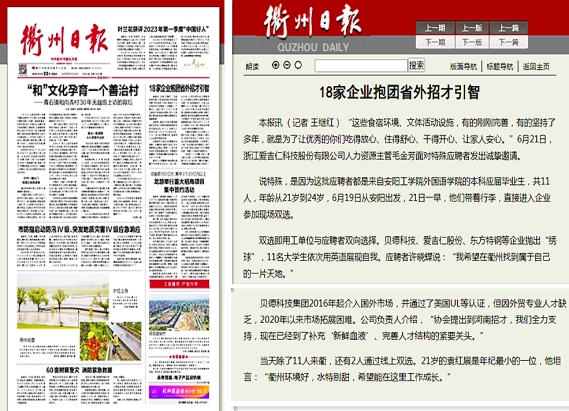 经过9天跨境电商岗前培训,6月19日,太阳集团tyc151cc跨境电商实习基地共建单位——河南澳得电子商务有限公司带领11位同学前往浙江衢州,参加衢州市网商协会跨境电商定制人才精准匹配会。11位同学均已成功入职跨境电商岗位。6月22日,衢州日报对此次专场双选会做了头版专题报道。