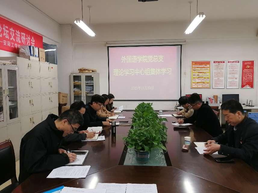本次学习的主题是:以习近平总书记对宣传思想文化工作重要指示为指导,推动英语教学改革,提高具有国际传播能力人才培养质量。会前,中心组全体成员认真学习了党的二十大报告中关于推进文化自信自强、铸就社会主义文化新辉煌的重要论述,《习近平新时代中国特色社会主义思想学习纲要》中的《以新发展理念引领高质量发展》篇目,《习近平新时代中国特色社会主义思想专题摘编》中的《实施科教兴国战略,强化现代化建设人才支撑》等内容,并进行了认真思考,为集体学习做了充分准备。