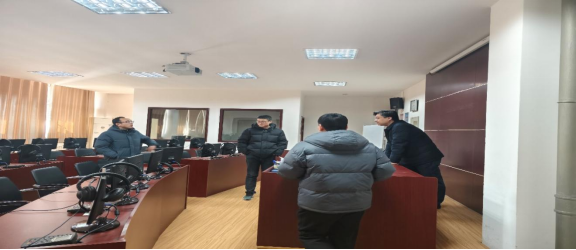随后,他们检查了太阳集团tyc151cc实验室。首先,他们强调了实验室的安全与管理工作,对语音实验室、同声传译室、商务综合实训室和翻译实训室等关键实验室进行了全面而深入的安全自查;其次,对实验室教学环境改善及教学设备的升级改造工作给予了肯定;最后,鼓励实验室负责人结合公司发展,再接再厉抓好2025年实验室建设和改造工作。
